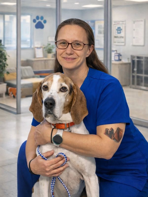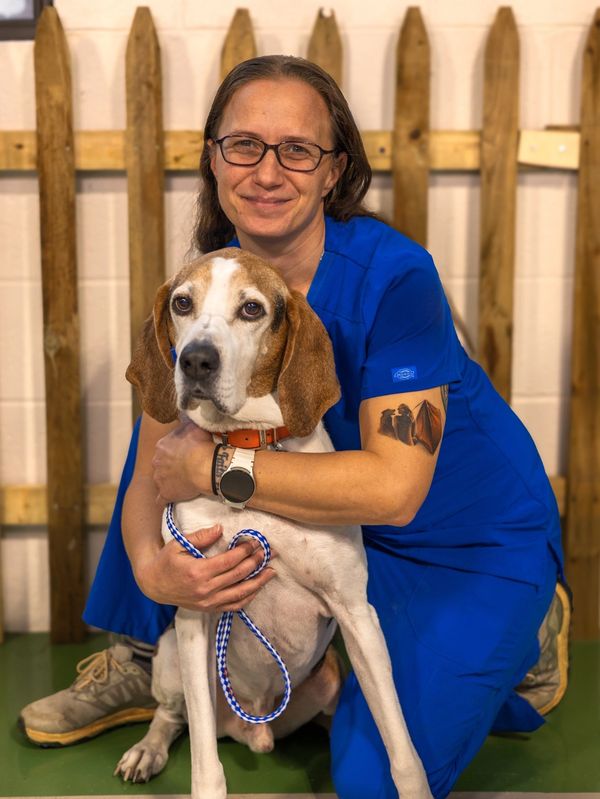 Holly started her journey in human medicine over 20 years ago as a nurse's aide. However, after she had several pets experience medical emergencies, she vowed to never be helpless when an animal needed her again. In 2008, she shifted her focus from human medicine to veterinary medicine. After earning her degree in Veterinary Science, Holly became a Certified Veterinary Technician in 2013. She has spent many years working in Emergency Departments and Intensive Care Units and eventually found her home as a surgical nurse. One of her favorite aspects of working in veterinary medicine is teaching clients how to care for their sick pets at home. In July of 2025, Holly was promoted to All 4 Paws Pet Care General Manager where she runs day to day operations in our West Hartford facility. Hollys unmatched experience and skillset are used daily with a new passion for client relations. Holly has a coonhound named Zombie, whom she hand raised since he was just 2 weeks old. Holly and Zombie enjoy spending time together in the woods, the mountains and at work every day. Some of their favorite activities include hiking, trail running, and backpacking. When not in the woods with Zombie, Holly can be found reading or traveling with her sister. We are very excited to have such an amazing and passionate animal lover on board and leading the pack.