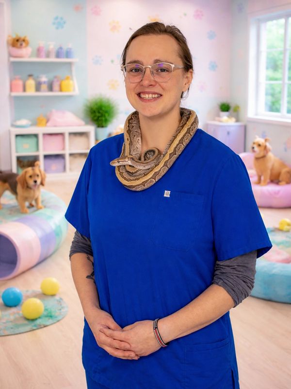 Cheryl's passion for animals ignited on her family's bustling horse farm, where mucking stalls and nurturing foals felt like second nature, steering her toward veterinary medicine; now pursuing her veterinary technician license, she's devoted to providing compassionate care for every creature—from cherished pets to "creepy crawlies" like spiders and snakes—ensuring quality treatment regardless of size or species. Her home mini-zoo buzzes with a loyal German Shepherd, energetic Australian Shepherd, three mischievous cats, three docile ball pythons, a quirky crested gecko, and five ducks she raised from day-old ducklings. We are very lucky to have such an experienced and passionate technician on board like Cheryl.